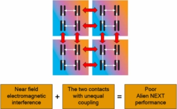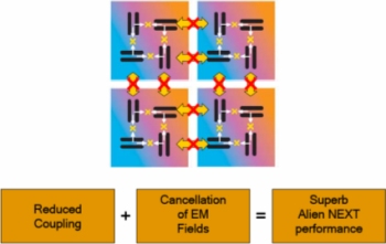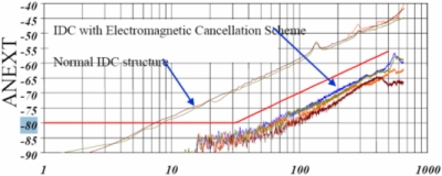 Poprawa w zakresie eliminacji ANEXT jest znacząca. Na poniższym rysunku pokazano wydajność Power Sum Alien NEXT dla konwencjonalnego panelu w porównaniu z panelem wykorzystującym technologię MatriX IDC.